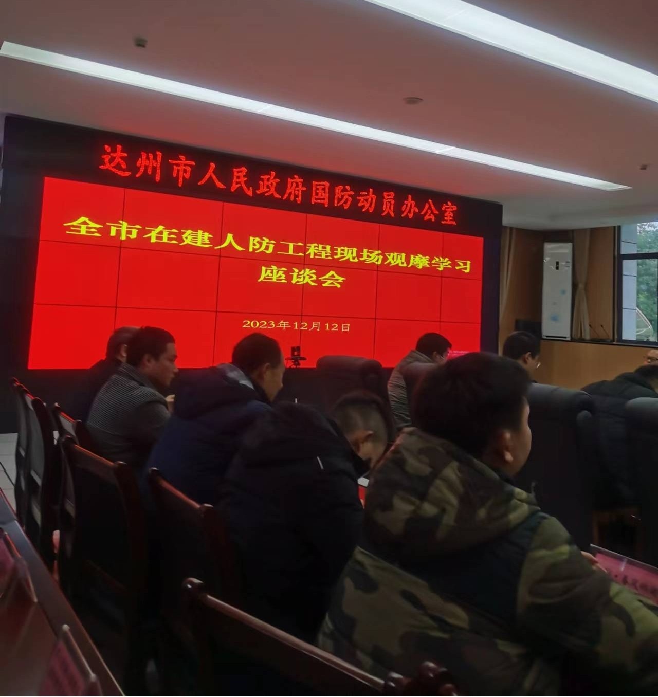 2023年12月12日,达州市人民政府国防动员办公室在中申华达公司监理的达州大数据基地建设项目举行了达州市在建人防工程建设项目现场观摩,并召开了观摩学习座谈会,全市在建人防工程建设项目各参建单位主要负责人、市区住建局、国动办等相关领导参加本次会议。