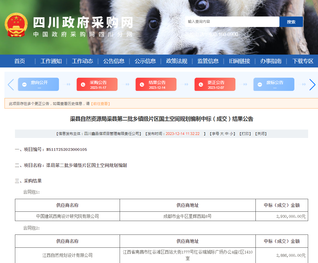 中申华达公司中标渠县第二批乡镇级片区国土空间规划编制项目