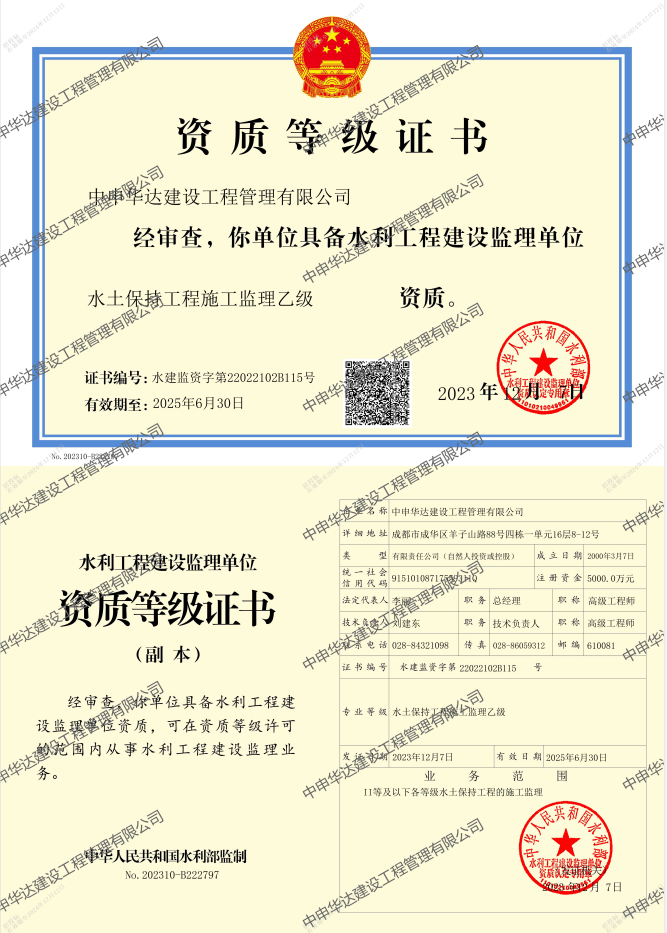 水土保持施工监理乙级证书