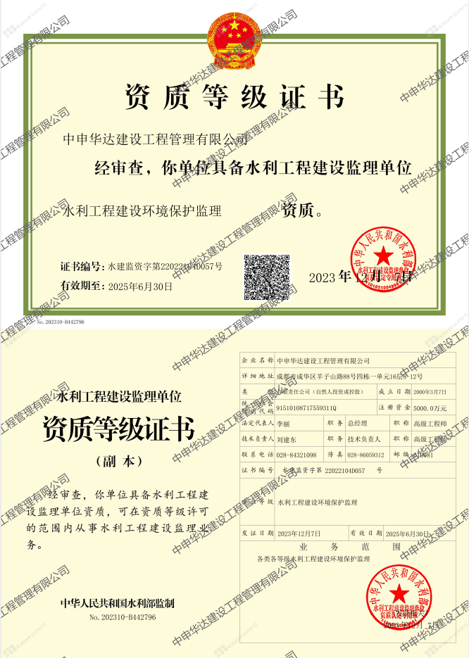 水利工程建设环境保护监理资质证书