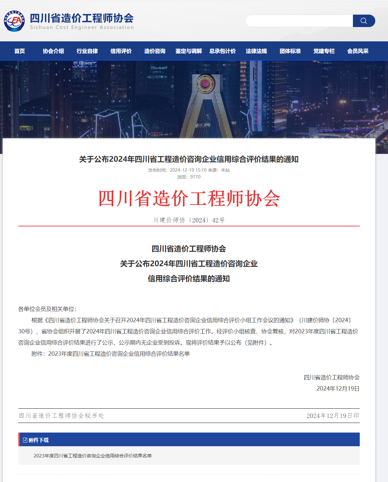 四川省工程造价咨询企业信用综合评价结果正式揭晓,中申华达公司成功获评2024年四川省工程造价咨询企业AAA级信用评价!这一信用评价,是行业协会对我司综合实力的权威认可,更是市场与客户对我们多年诚信经营的高度信赖。